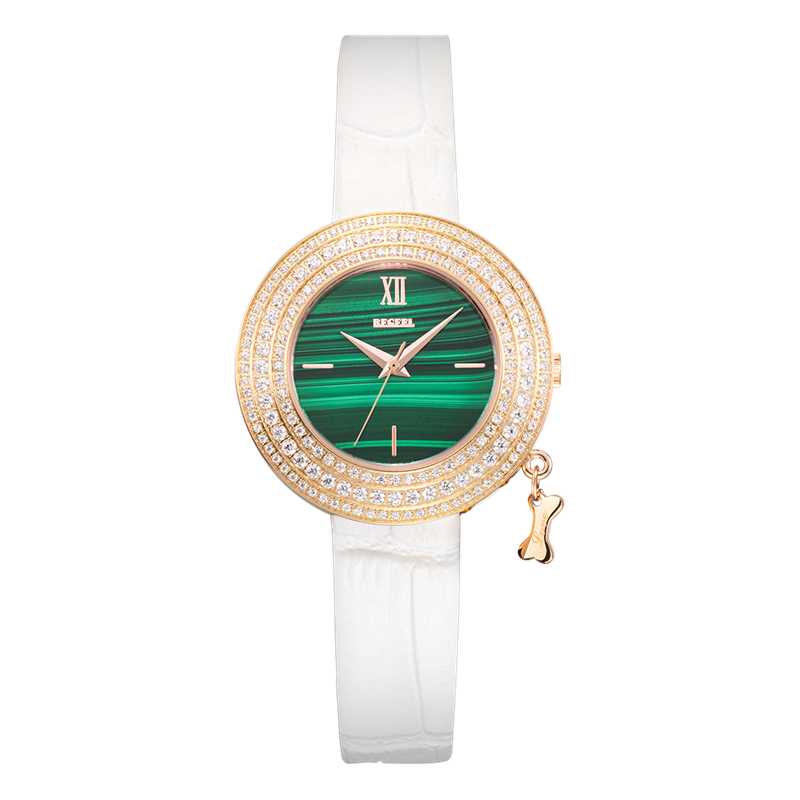 軍綠色防水墊片暴露在八角形表圈下方,也為腕表增添了一絲運動氣息。得益于嚴格的防水設計,整體防水性能深達300米。手表的另一側有一個黑色陶瓷制成的旋入式表冠,表冠兩側的墊肩緊緊保護著表冠,防止潛水和開啟時意外觸碰。