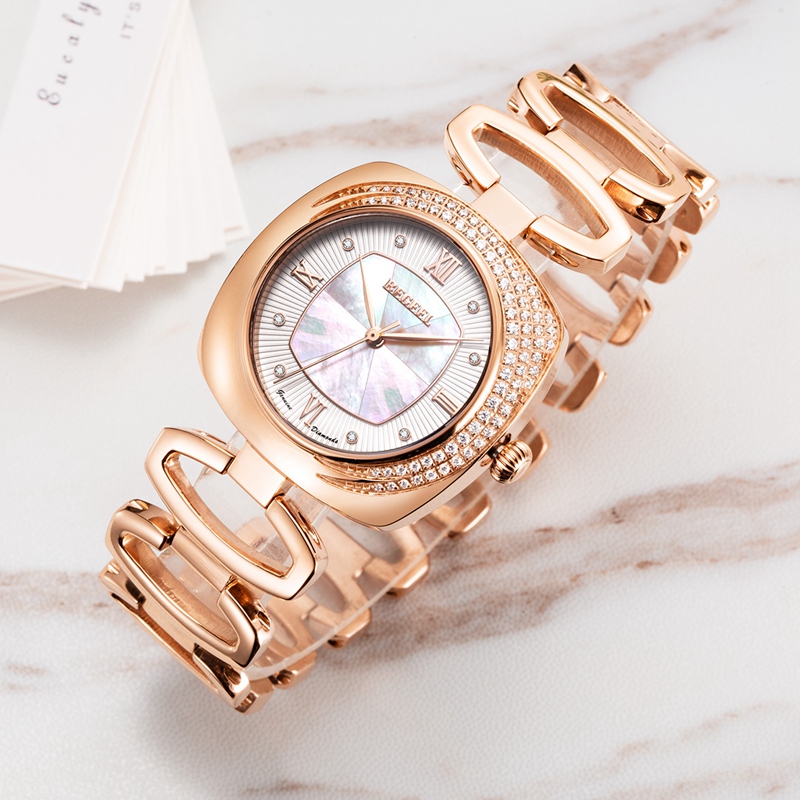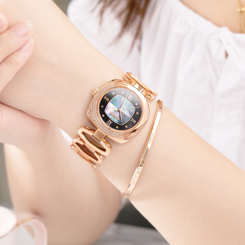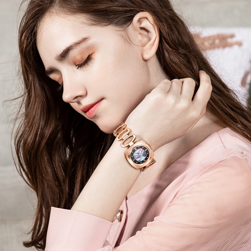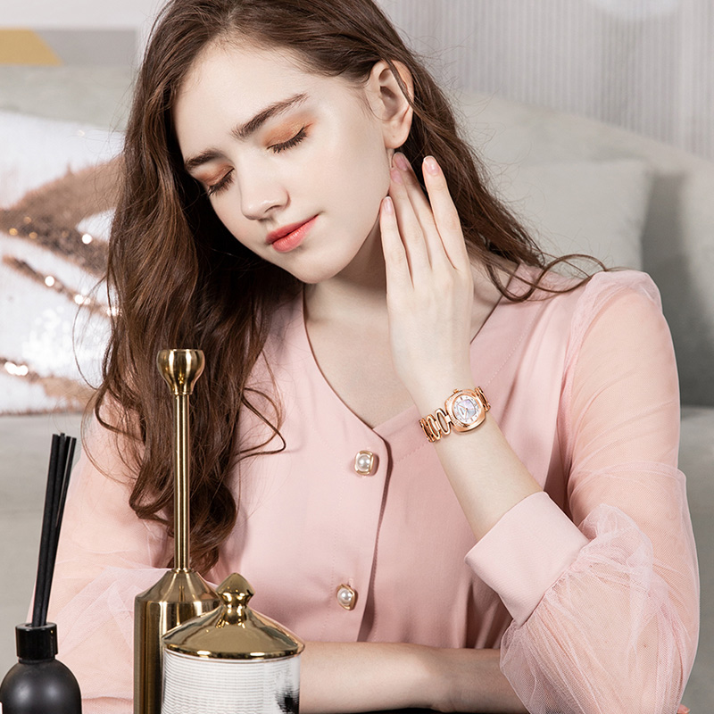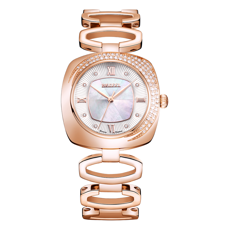腕間曲線優美的表帶猶如音符波動,與腕表上的彎彎月牙巧妙結合,在舉手投足之間譜出一首高貴典雅的月曲。在堅持精準計時的同時,追求充滿節奏感與藝術氣質的外形,表盤采用天然質地獨特的白色或黑色大溪地珍珠母貝裝飾,8顆真鉆鑲嵌,每一個細節無一不刻畫月牙美態。