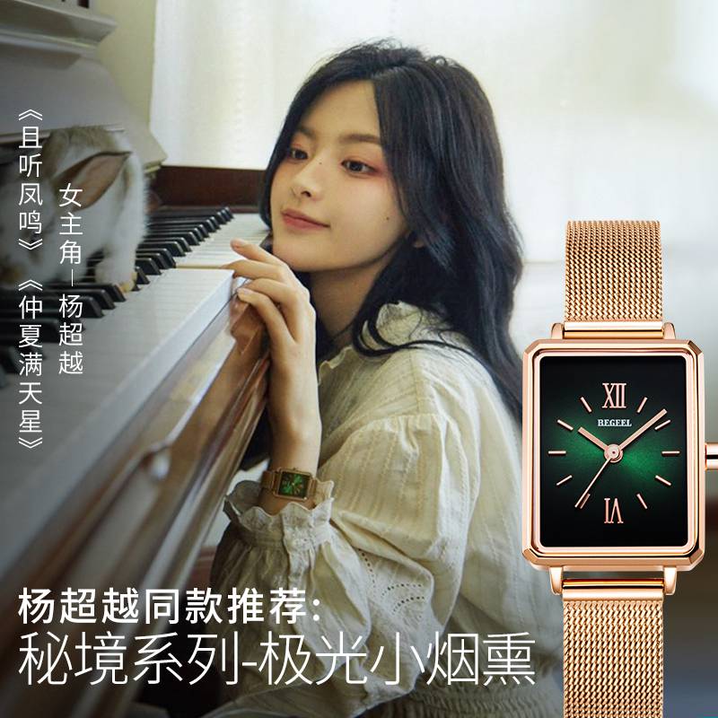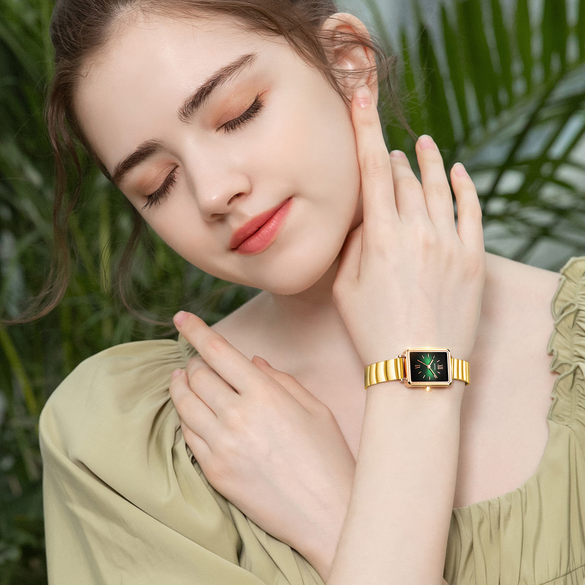 SCENREY·秘境系列-極光小煙熏—時光秘境系列是簡約風格的典范,將簡單與精致的特點相互交融,締造出珍貴、細膩、充滿女性魅力,又時而有些神秘的珠寶腕表。萃取極光熒綠,以綻放雋永奪目光彩的煙熏綠為表盤主色調,充滿了絢麗神秘色彩。漸變色系,清麗脫俗,卻又不乏個性,如女性眉眼靈動的煙熏妝容,集柔美神秘清新于一身。