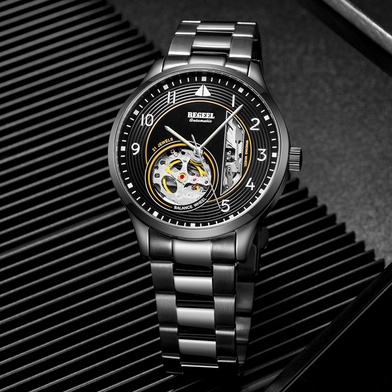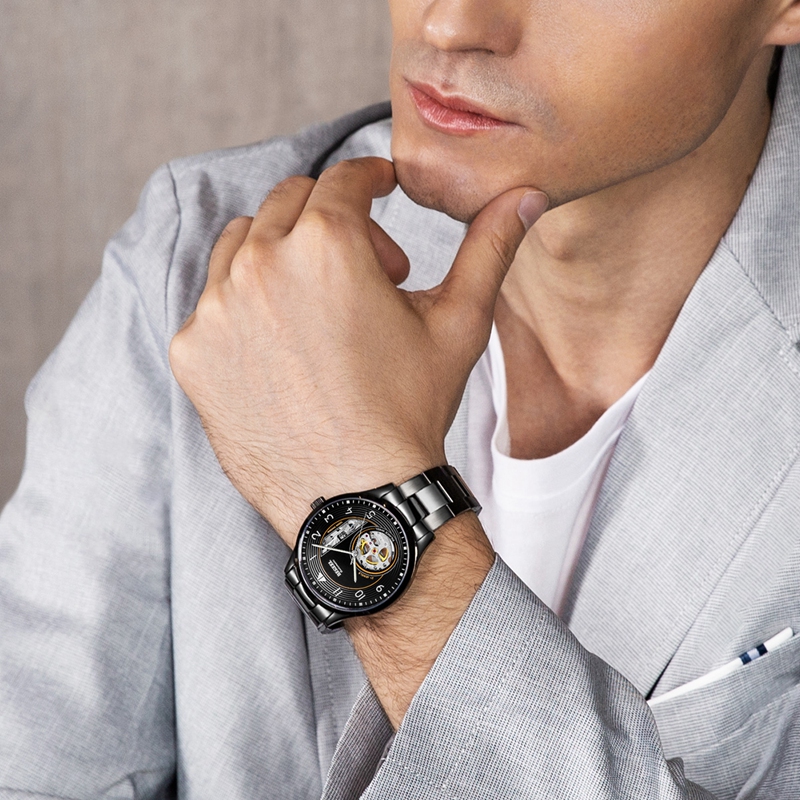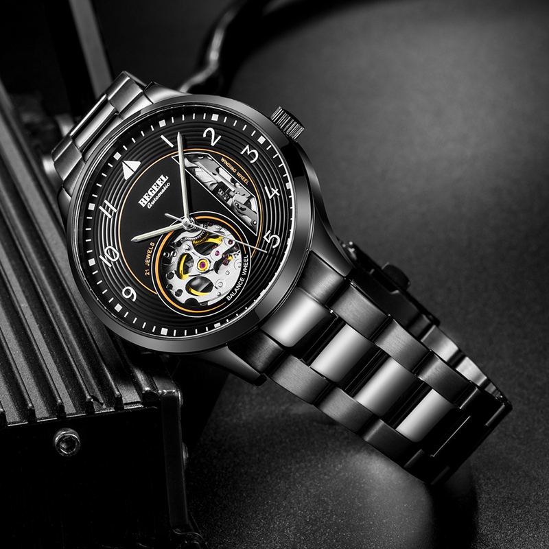 字面:日內瓦紋理,鏤空黑面,夜光刻度設計
