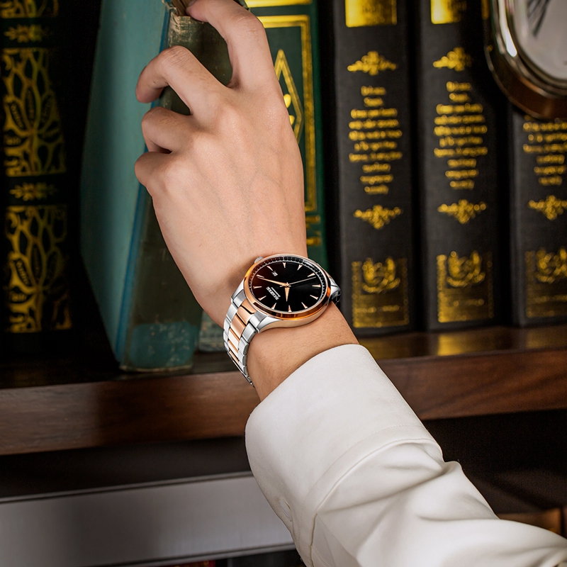 以戰(zhàn)爭中剛毅的守護神為主要設(shè)計靈感,整體設(shè)計簡潔剛毅,又不乏紳士的儒雅氣質(zhì),玫瑰金色搭配精鋼表帶,飾以太陽紋黑色表盤,于男士耀目的氣質(zhì)中增添一抹銳氣與沉穩(wěn),傳遞出大氣與堅毅的守護者力量,自信展示真我的型男魅力。
