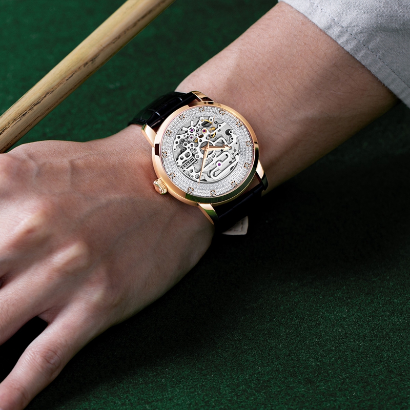以古巴比倫雄偉的宮殿建筑作為背景設計,弧廊環繞,層層下沉的水晶鉆鑲嵌打造腕表隱有圣光環繞的浪漫。12顆鉆石時標有如古巴比倫宮殿所鑲嵌的琉璃與寶石,輝映著巴洛克的夢,延續奢華而神秘的古典繁華。