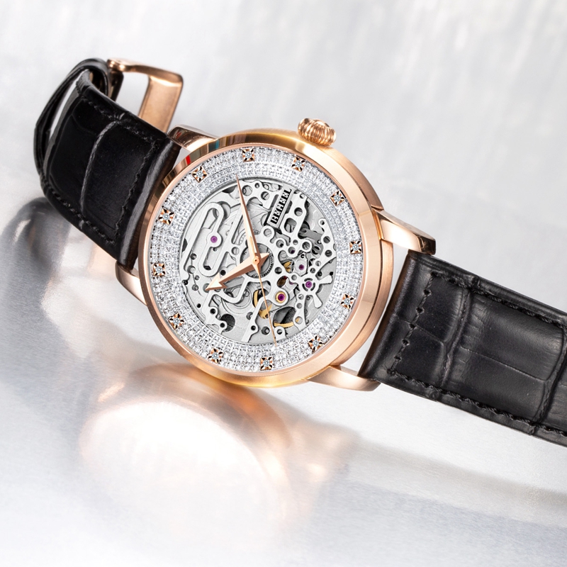 以古巴比倫雄偉的宮殿建筑作為背景設計,弧廊環繞,層層下沉的水晶鉆鑲嵌打造腕表隱有圣光環繞的浪漫。12顆鉆石時標有如古巴比倫宮殿所鑲嵌的琉璃與寶石,輝映著巴洛克的夢,延續奢華而神秘的古典繁華。
