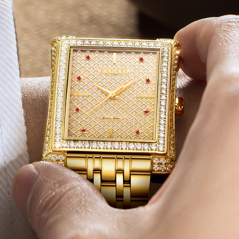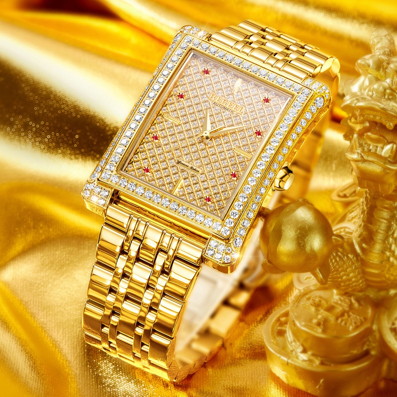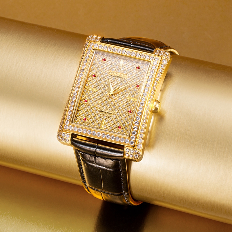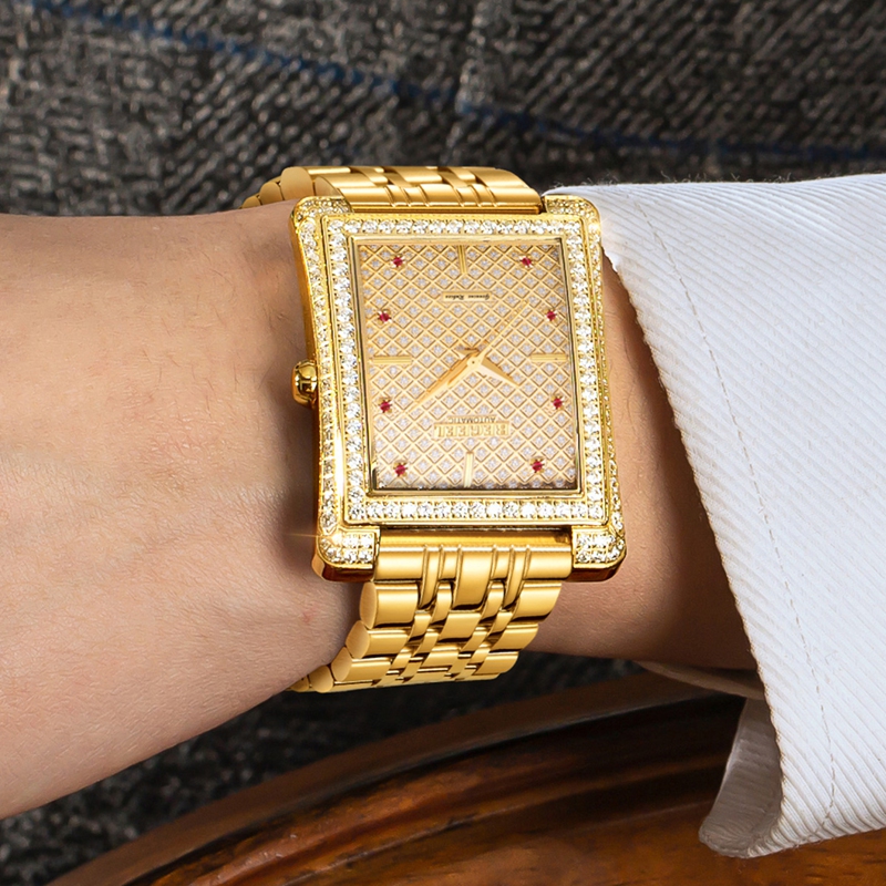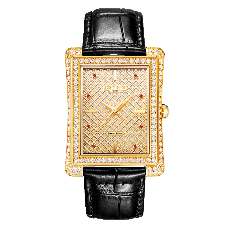 表殼:316L精鋼+電鍍全金+鑲130顆晶鉆