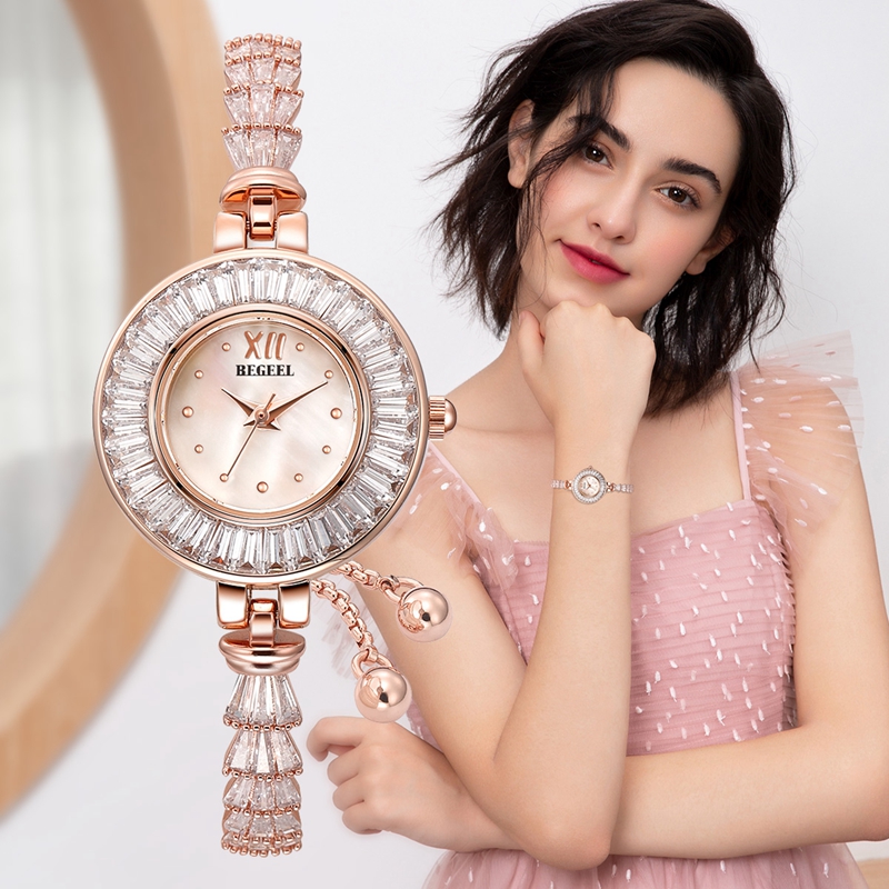 表殼:電鍍玫瑰金 鑲30顆水晶鉆