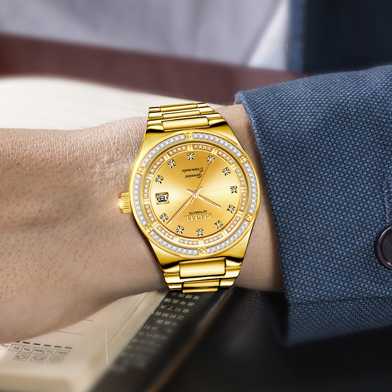 表殼:316L精鋼(電鍍真金)圈口鑲60顆晶鉆方石