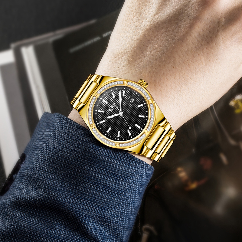 表殼:316L精鋼(電鍍真金)/間金,圈口鑲60顆晶鉆方石