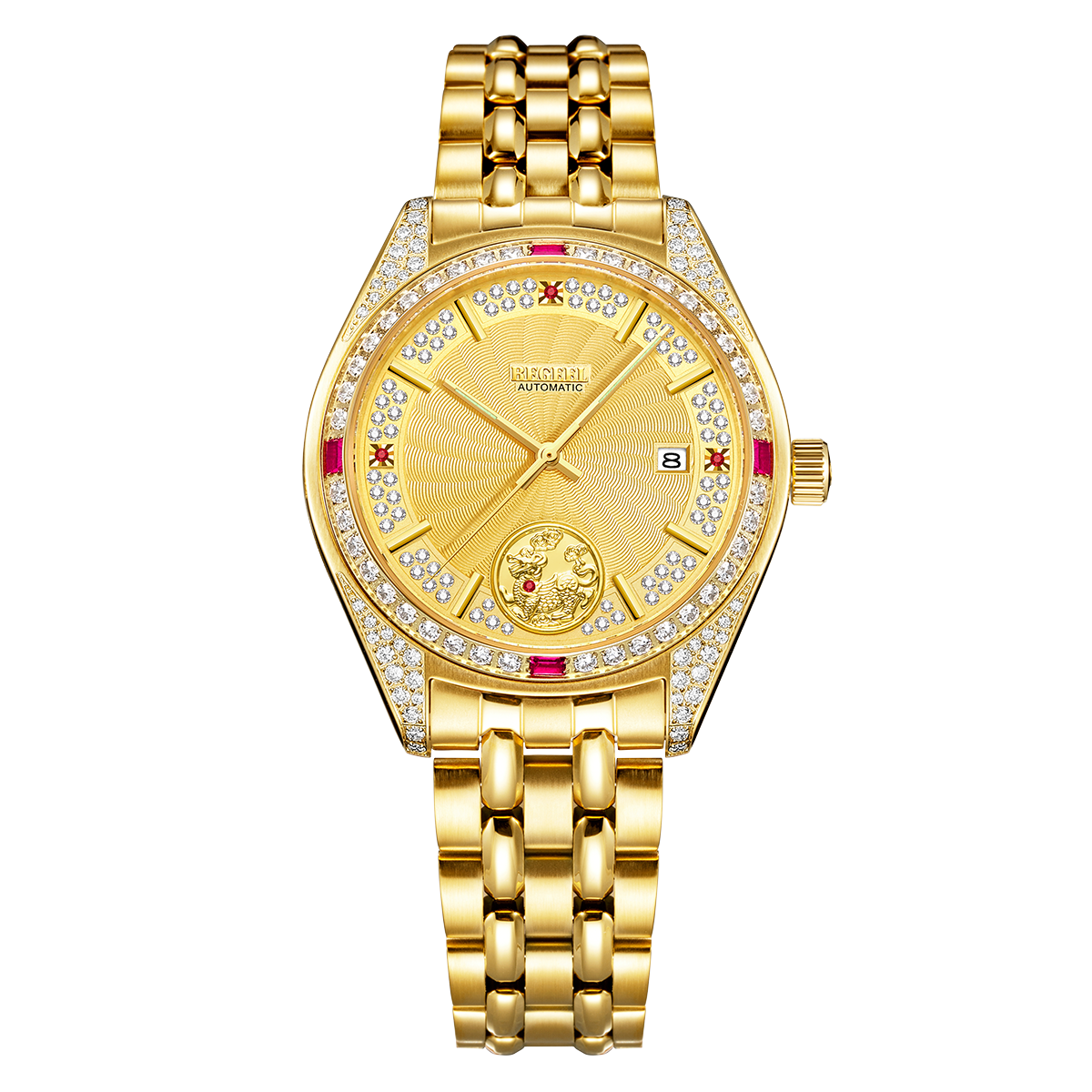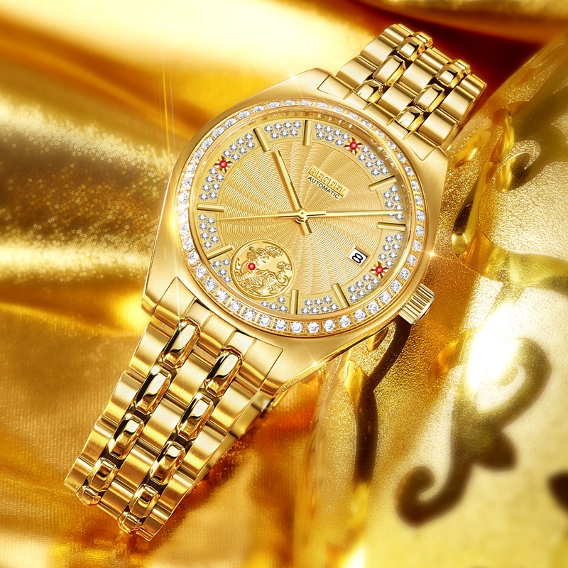 表殼:白圈口:316L精鋼電鍍真金,圈口鑲嵌46晶鉆