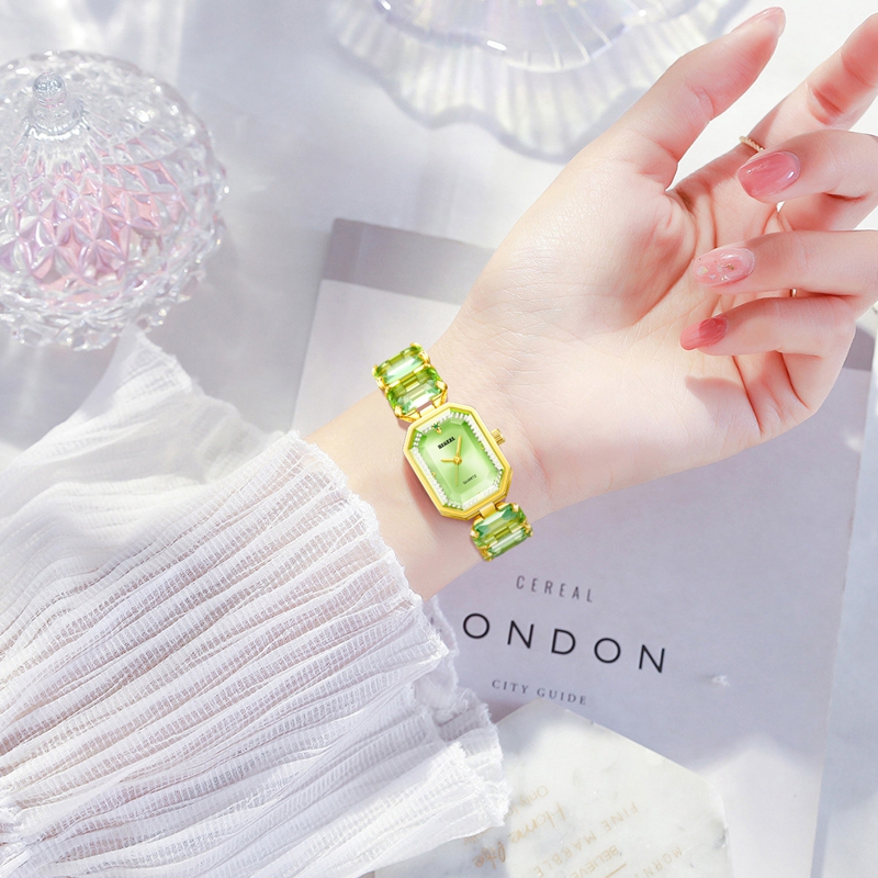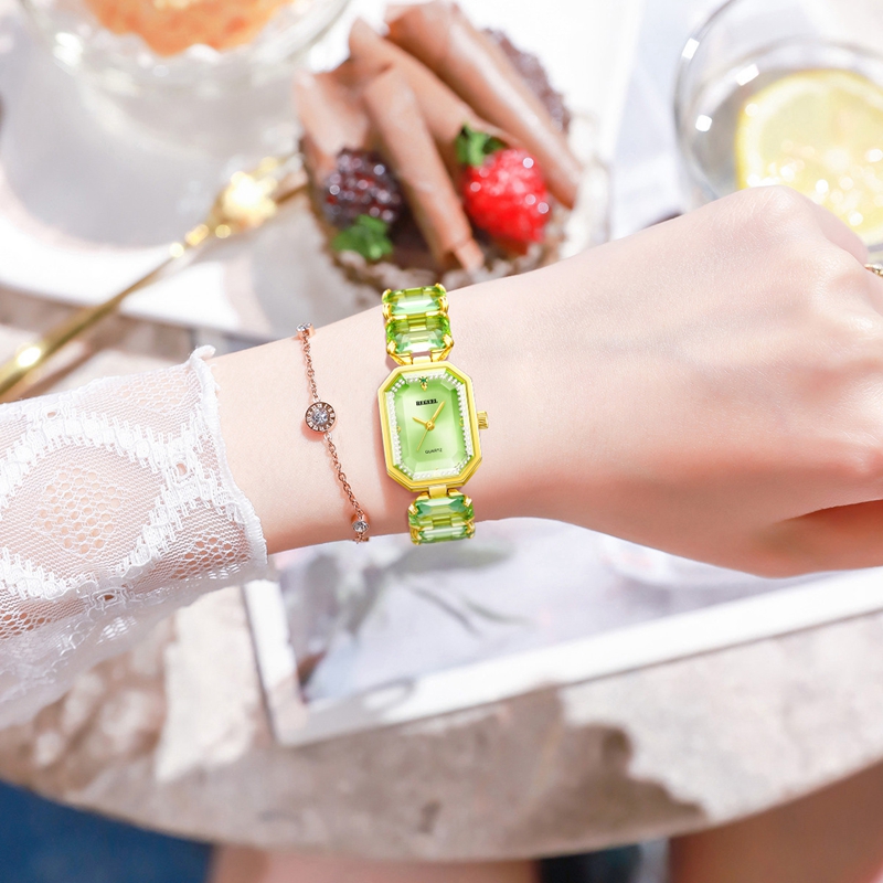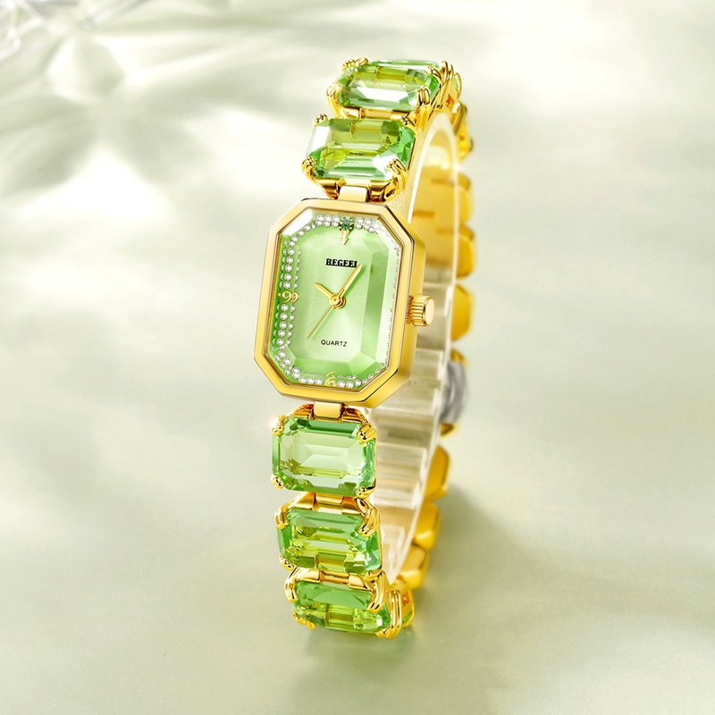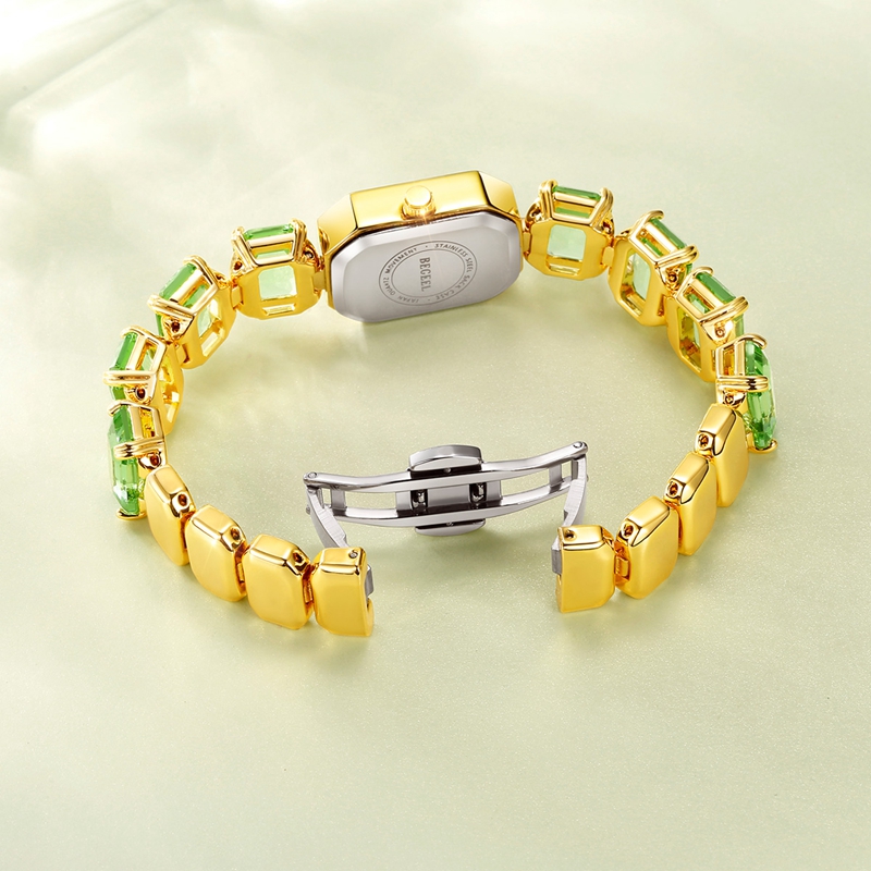 表帶:電鍍真金,鑲嵌8顆方形晶鉆