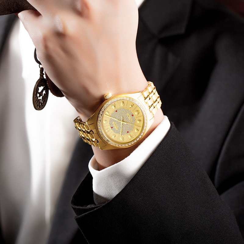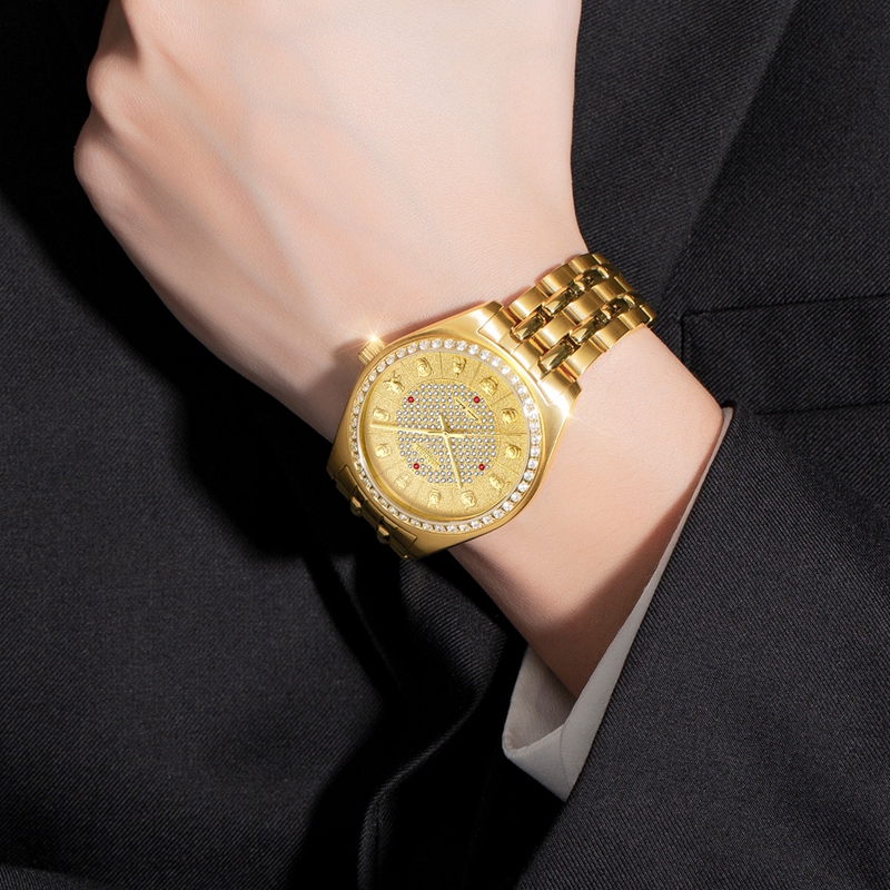 表殼:316L精鋼電鍍真金,圈口鑲46顆晶鉆