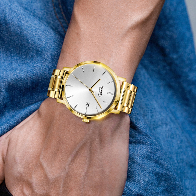 以劃破夜空的黎明之劍為主要設計靈感,寓意光明與守護、剛毅與純真,腕表整體設計風格經典大氣、氣度不凡,電鍍真金精鋼表殼搭配純色表盤,高級儒雅,夜光指針,極簡數字日歷框,于銳氣凌厲之中體現男士隱藏于簡單之后的先鋒精神,沉穩內斂,不拘一格。