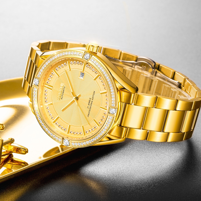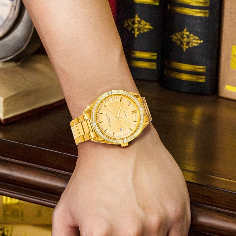表殼:316L精鋼,電鍍金,光圈/金寶鼎圈口鑲約80顆晶鉆/福星圈口鑲約60顆晶鉆