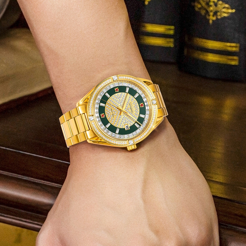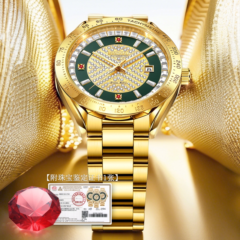 字面:3顆真紅寶石,翡翠綠色,45顆方晶鉆,136顆晶鉆,夜光針