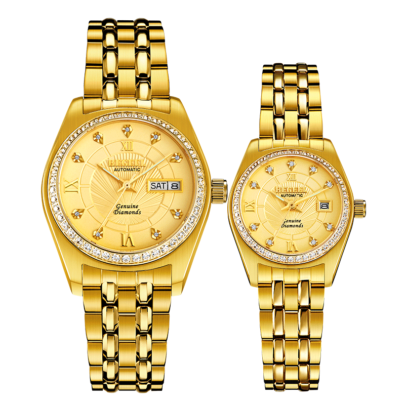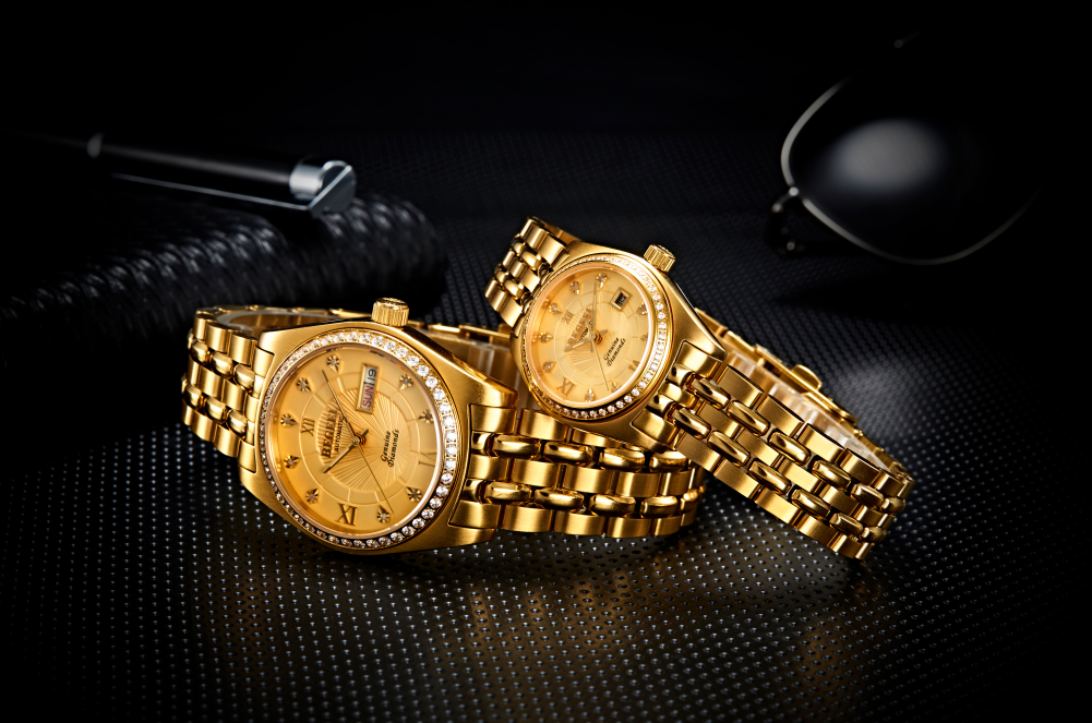 設計靈感源自玉龍雪山的“一米陽光”的傳說。圓形表盤設計仿照太陽的圓形切面結構,擷取太陽的本色繪染表盤,閃閃金光中釋放熠熠光輝。將傳說中短暫而可貴的一米陽光復刻到金色表盤上,由工匠精心雕刻成精美的太陽紋飾,從中心呈放射狀向四周輻射,萬丈光芒,暖意滿滿,象征著愛侶之間比陽光更暖的掛念和關懷。