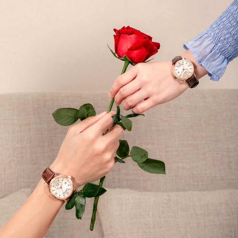 表帶:316L精鋼+電鍍真玫瑰金/頭層小牛皮