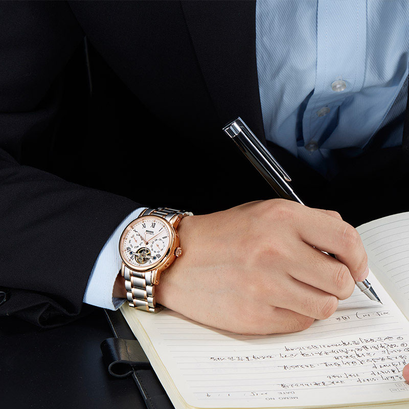表帶:316L精鋼+電鍍真金/頭層小牛皮