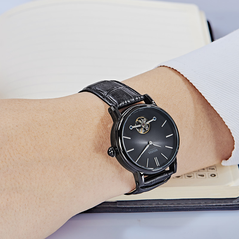 設計師從飛奔的獵豹中汲取靈感,漸變色fumé煙熏表盤設計源自夜色中閃爍的金色豹眼,犀利神秘,仿佛蘊含著無盡的力量;強而有力的黑色流線型表殼、蓄勢待發(fā)的鏤空飛輪,一場驚心動魄的狩獵即將開展。